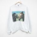 L★古着 長袖 スウェット メンズ 90年代 90s ルーニーテューンズ LOONEY TUNES タズ クルーネック USA製 グレー 霜降り