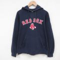 L★古着 長袖 スウェット パーカー メンズ MLB ボストンレッドソックズ 紺 メジャーリーグ ベースボール 野球