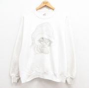 L★古着 ジャージーズ 長袖 スウェット メンズ 90年代 90s ネコ クルーネック USA製 白