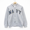S★古着 長袖 フルジップ スウェット パーカー メンズ 00年代 00s ミリタリー ネイビー NAVY グレー 霜降り 26mar05