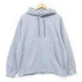 XL★古着 ナイキ NIKE 長袖 スウェット パーカー メンズ ワンポイントロゴ グレー 霜降り 26apr04