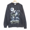 M★古着 長袖 スウェット メンズ 90年代 90s オオカミ ラグラン クルーネック USA製 黒 霜降り 26apr13