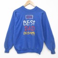 S★古着 長袖 スウェット メンズ 80年代 80s BEST ラグラン クルーネック USA製 青 26apr16
