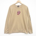 M★古着 長袖 ロック バンド スウェット メンズ ローリングストーンズ クルーネック 濃ベージュ【spe】 26apr28