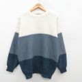 【商品名】 XL★古着 長袖 セーター メンズ 00年代 00s 無地 マルチカラー アクリル クルーネック 紺他【spe】
