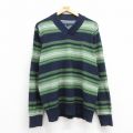 L★古着 トミーヒルフィガー TOMMY HILFIGER 長袖 ブランド セーター メンズ ワンポイントロゴ コットン Vネック 紺他 ネイビー 24sep21 中古 ニット トップス