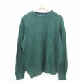 XL★古着 ノーティカ NAUTICA 長袖 ブランド ケーブル セーター メンズ ワンポイントロゴ 大きいサイズ コットン クルーネック 緑 グリーン 24sep25 中古 ニット トップス