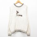 M★古着 長袖 セーター メンズ 90年代 90s 鳥 刺繍 コットン クルーネック USA製 白 ホワイト 24sep26 中古 ニット トップス