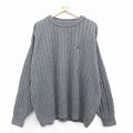 XL★古着 IZOD 長袖 ケーブル セーター メンズ 90年代 90s ワンポイントロゴ 大きいサイズ コットン クルーネック USA製 グレー 24sep27 中古 ニット トップス
