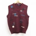 M★古着 シアーズ ニット ベスト メンズ 80年代 80s 無地 アクリル Vネック 赤