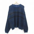XL★古着 長袖 セーター メンズ 90年代 90s 大きいサイズ アクリル クルーネック 黒他 ブラック 24sep30 24oct01 中古 ニット トップス