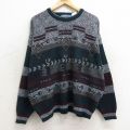 XL★古着 長袖 セーター メンズ 90年代 90s ネイティブ柄 ラグ柄 クルーネック 緑他