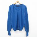 【商品名】 L★古着 Par Four 長袖 セーター メンズ 90年代 90s 無地 ラグラン アクリル Vネック 青
