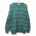 【商品名】 XL★古着 長袖 セーター メンズ 90年代 90s コットン クルーネック USA製 緑他