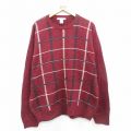 XL★古着 長袖 セーター メンズ 00年代 00s 大きいサイズ コットン クルーネック エンジ他 チェック 24oct09 中古 ニット トップス