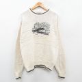 L★古着 長袖 セーター メンズ 90年代 90s 釣り ボート 刺繍 コットン クルーネック USA製 生成り 24oct09 中古 ニット トップス