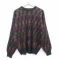 XL★古着 長袖 セーター メンズ 90年代 90s ラグ柄 大きいサイズ アクリル クルーネック 黒他