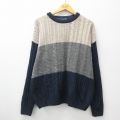XL★古着 長袖 ケーブル セーター メンズ 90年代 90s 大きいサイズ クルーネック カナダ製 紺他 ネイビー 24oct11 中古 ニット トップス