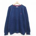 XL★古着 ノーティカ 長袖 ブランド セーター メンズ ワンポイントロゴ コットン クルーネック 紺