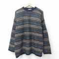 XL★古着 長袖 セーター メンズ 90年代 90s 大きいサイズ クルーネック 茶他 ボーダー
