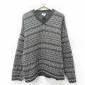 【商品名】 L★古着 長袖 セーター メンズ 90年代 90s フェアアイル Vネック USA製 濃グレー他