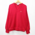 【商品名】 XL★古着 ラコステ LACOSTE 長袖 セーター メンズ 90年代 90s ワンポイントロゴ アクリル Vネック USA製 赤