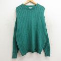 XL★古着 IZOD 長袖 ケーブル ーター メンズ 90年代 90s コットン クルーネック USA製 緑 グリーン 24oct18 中古 トップス