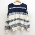 L★古着 長袖 セーター メンズ ネイティブ柄 ラグ柄 アクリル クルーネック 白他