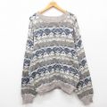 L★古着 長袖 セーター メンズ 00年代 00s クルーネック ベージュ他 カーキ 24oct19 中古 ニット トップス