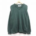 XL★古着 長袖 セーター メンズ 90年代 90s 無地 大きいサイズ Vネック 緑