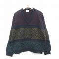 【商品名】 XL★古着 長袖 セーター メンズ 90年代 90s ネイティブ柄 ラグ柄 アクリル Vネック 紺他
