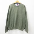 【商品名】 XL★古着 トミーヒルフィガー 長袖 ブランド セーター メンズ 90年代 90s ワンポイントロゴ 大きいサイズ コットン クルーネック 緑 霜降り