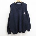 【商品名】 XL★古着 長袖 セーター メンズ 90年代 90s ゴルフ 手織り 大きいサイズ コットン Vネック USA製 紺