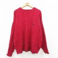 XL★古着 IZOD 長袖 ケーブル セーター メンズ 90年代 90s ワンポイントロゴ 大きいサイズ コットン クルーネック 赤 レッド 24oct26 中古 ニット トップス
