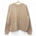 XL★古着 長袖 ケーブル セーター メンズ コットン クルーネック ベージュ