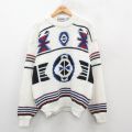 L★古着 長袖 セーター メンズ ネイティブ柄 ラグ柄 アクリル クルーネック 白他