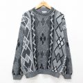 XL★古着 長袖 セーター メンズ 90年代 90s ラグ柄 大きいサイズ アクリル クルーネック 黒他