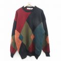 XL★古着 長袖 セーター メンズ 00年代 00s 大きいサイズ ロング丈 ウール クルーネック 黒他 ブラック 24nov01 中古 ニット トップス
