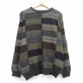 L★古着 長袖 セーター メンズ クルーネック 黒他 ボーダー
