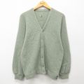 【商品名】 S★古着 長袖 ニット カーディガン メンズ 90年代 90s 無地 アルパカ 緑系