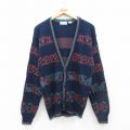 S★古着 キャンパス 長袖 ニット カーディガン メンズ 90年代 90s アクリル 紺他 ネイビー 24nov02 中古 トップス