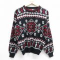L★古着 長袖 セーター メンズ 90年代 90s ネイティブ柄 ラグ柄 アクリル クルーネック 黒他