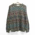 XL★古着 長袖 セーター メンズ 90年代 90s アクリル クルーネック 緑他