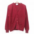 L★古着 長袖 ニット カーディガン メンズ 90年代 90s 無地 アクリル USA製 赤