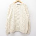 【商品名】 L★古着 長袖 アラン フィッシャーマン ケーブル セーター メンズ 90年代 90s 手編み ハンドニット ウール クルーネック 生成り