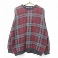 XL★古着 長袖 セーター メンズ 90年代 90s コットン クルーネック エンジ他 チェック