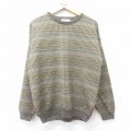 L★古着 長袖 セーター メンズ 00年代 00s 大きいサイズ アクリル クルーネック 茶他