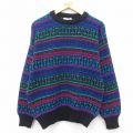 L★古着 長袖 セーター メンズ 90年代 90s アクリル クルーネック 紺他