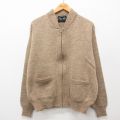 XL★古着 長袖 フルジップ ニット カーディガン メンズ 90年代 90s ベージュ カーキ 24nov08 中古 トップス