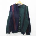 XL★古着 長袖 ニット カーディガン メンズ 90年代 90s マルチカラー クレイジーパターン コットン 濃緑他 グリーン 24nov08 中古 トップス